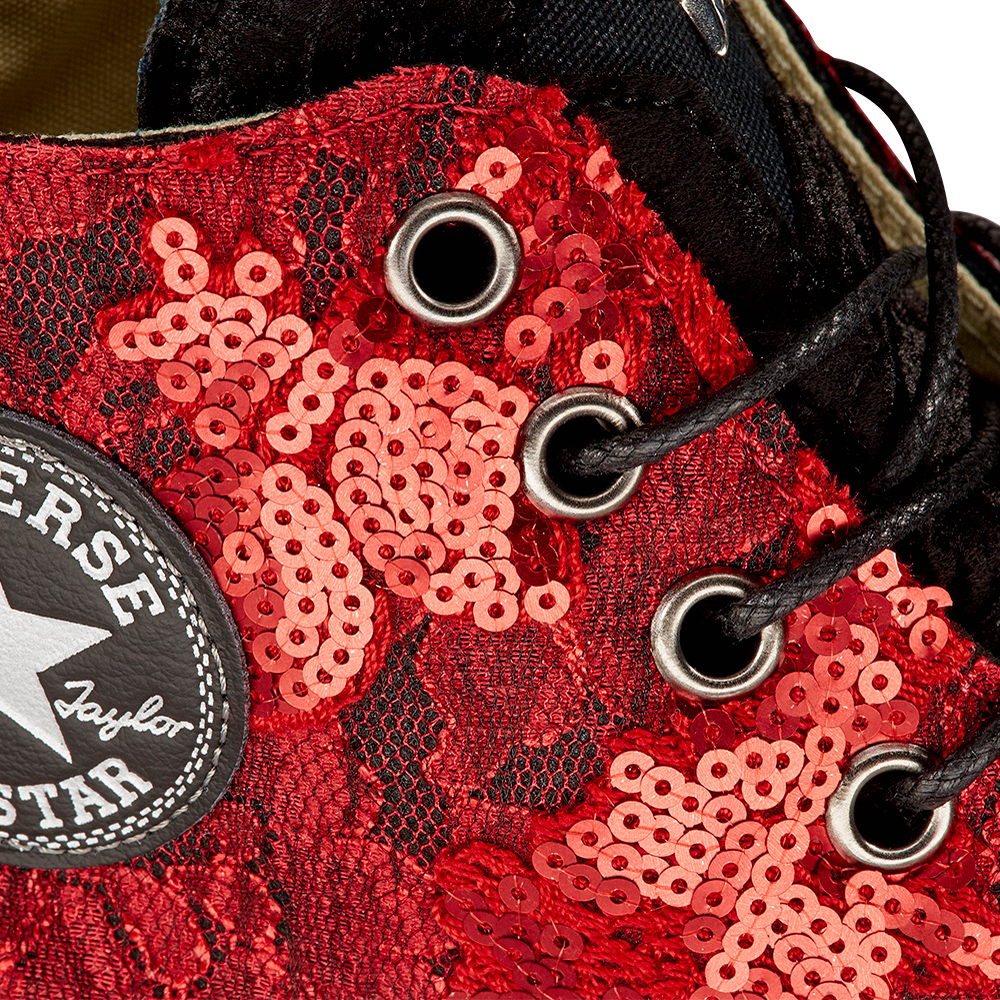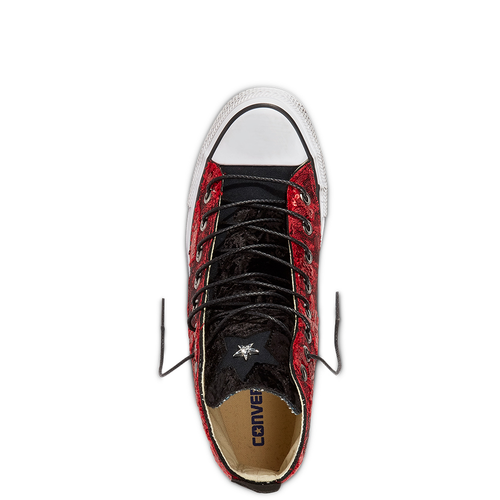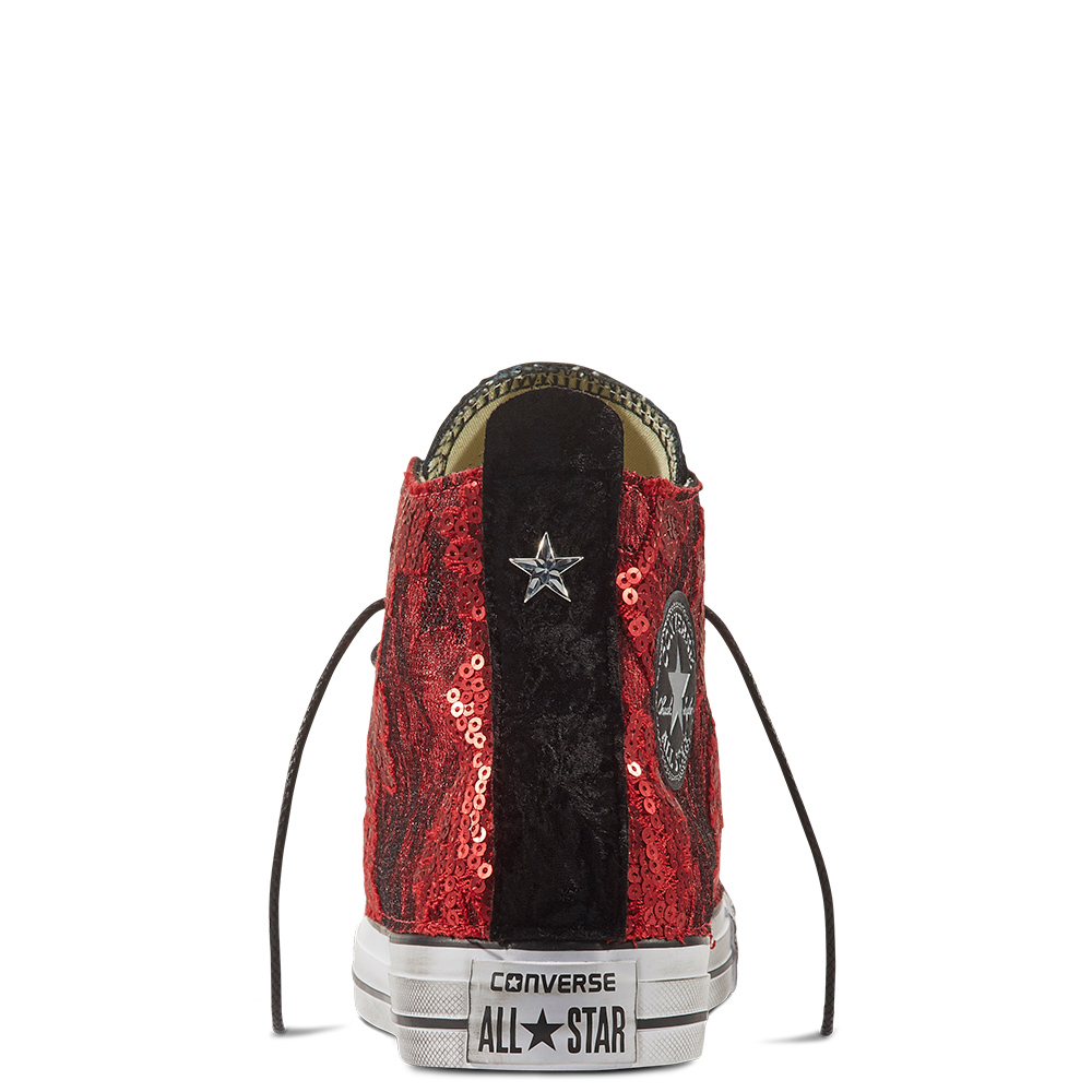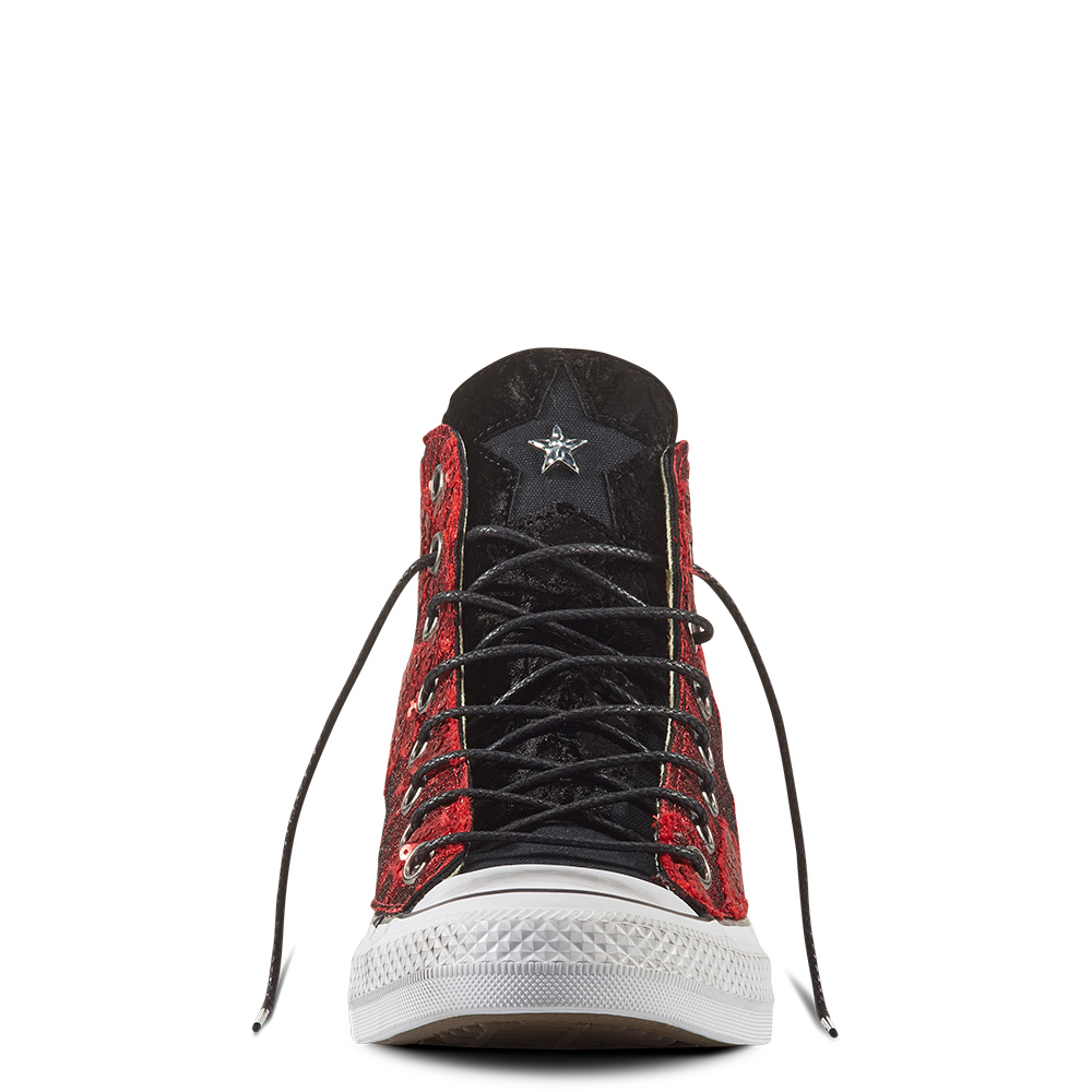 :: Converse Chuck Taylor All Star Sequins & Velvet High Tops Womens - Black/White/Black Shoes (207ISFDC)
