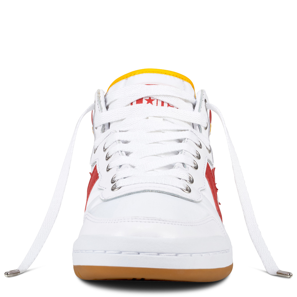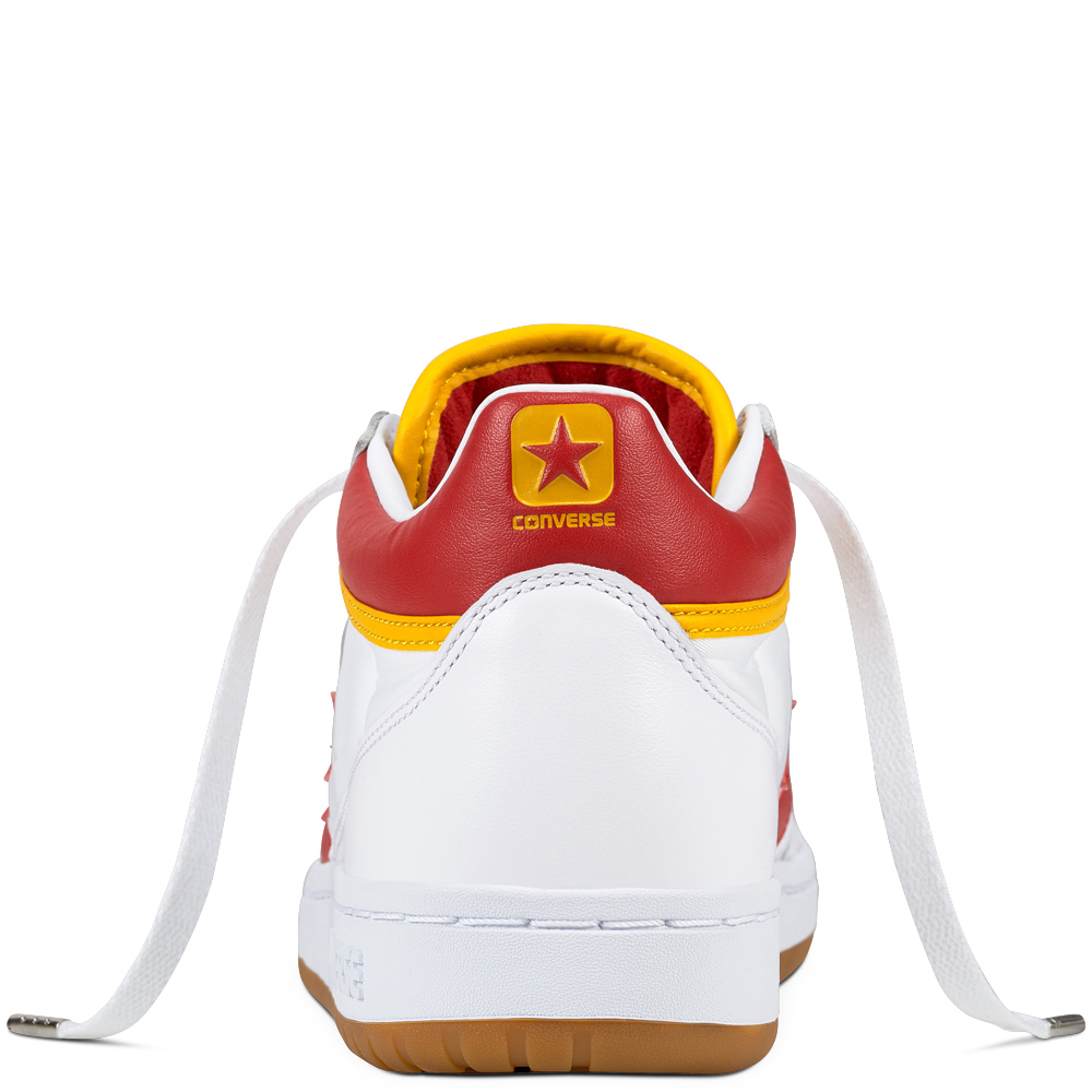 :: Converse Fastbreak Pro Mid Leather Mid Tops Mens - White/Red Shoes (298RYPKZ)